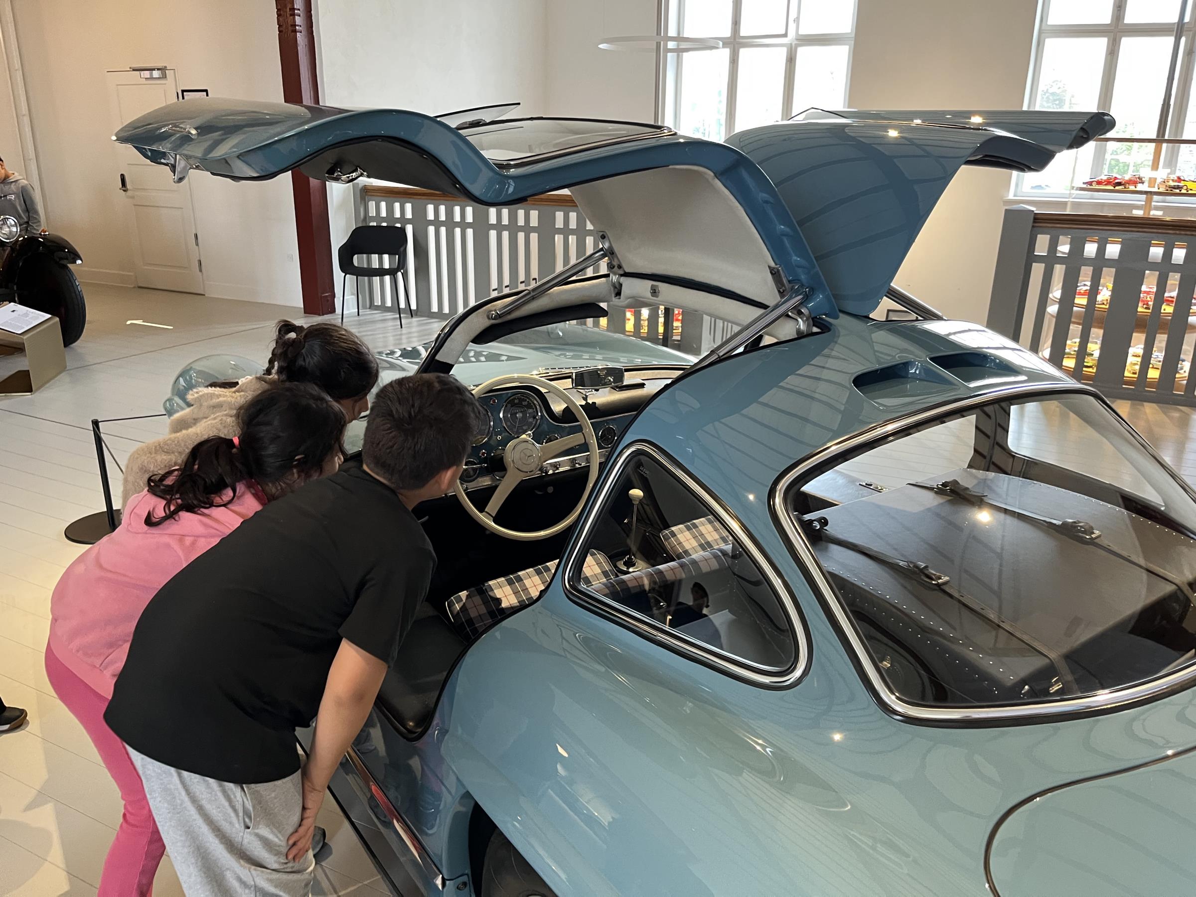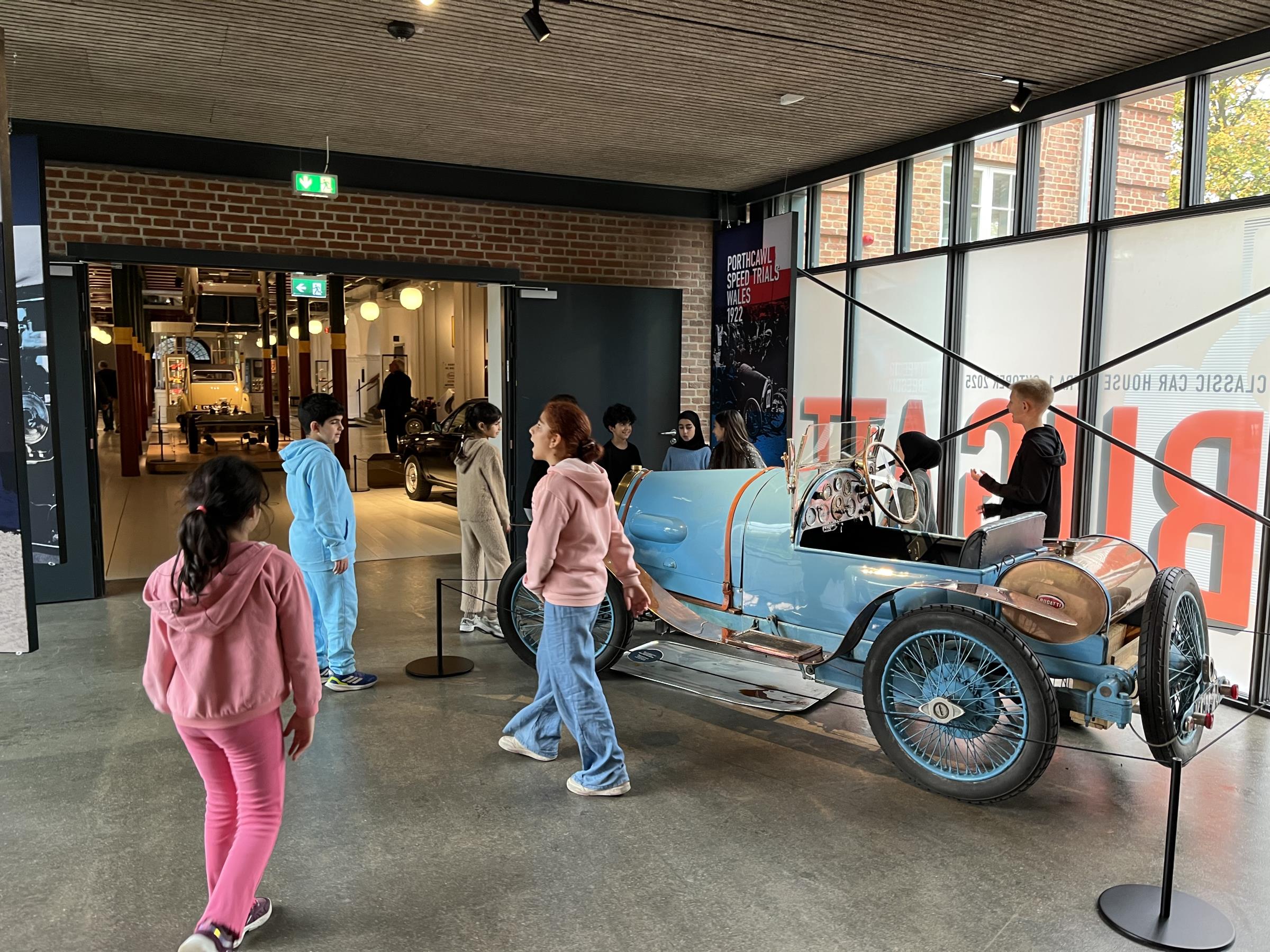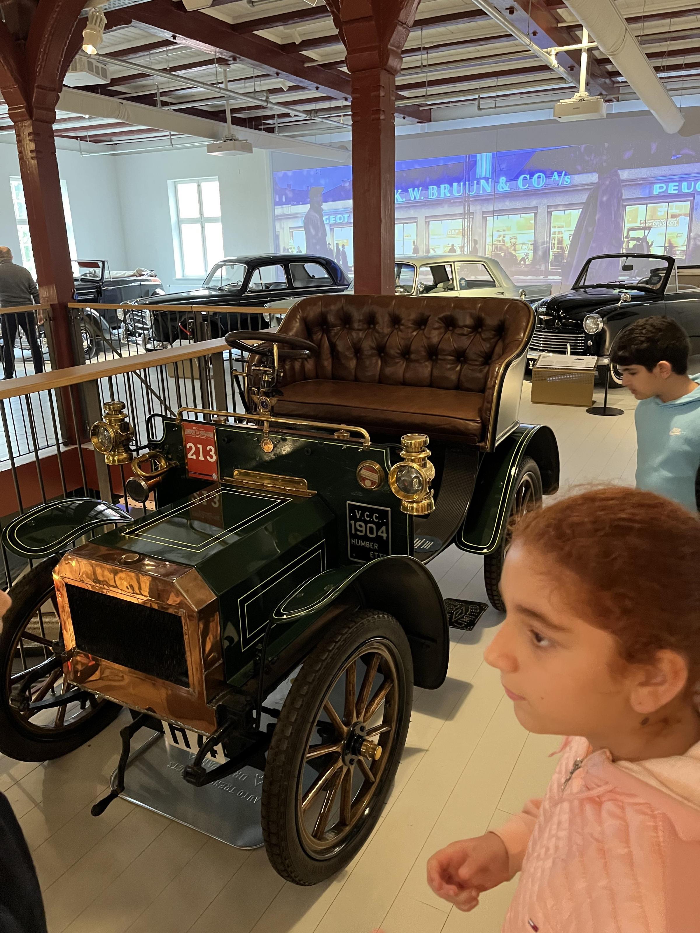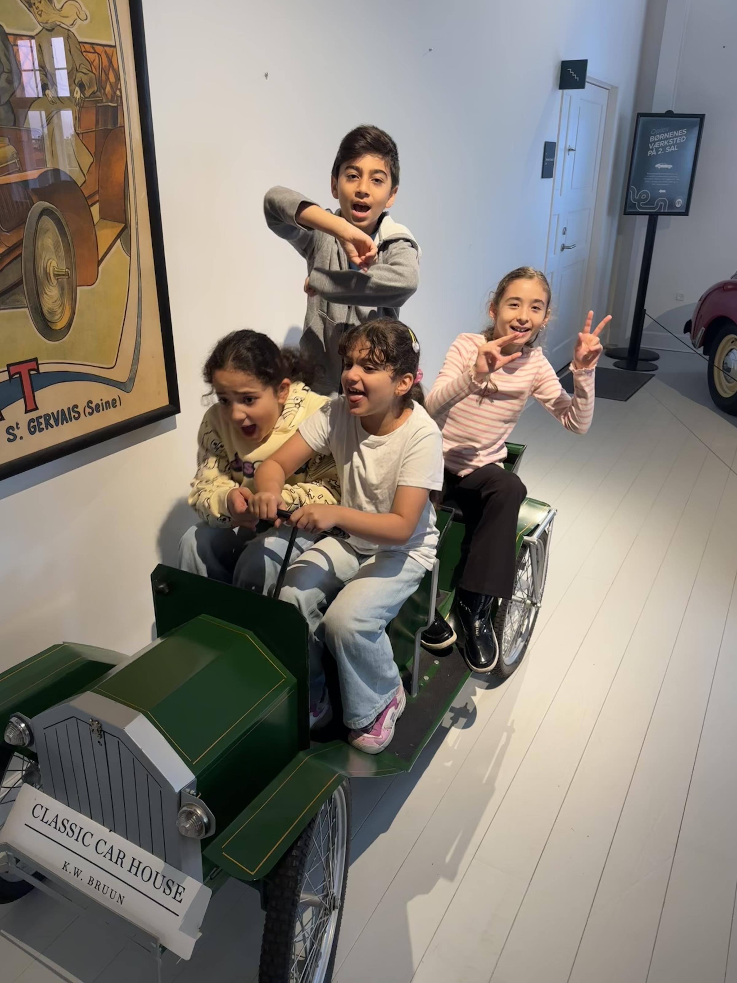 Vi var taget helt til Lyngby for at se på biler. Bilmuseet var fyldt med de skønneste biler fra alle tider, og vi fik til sidst lov til at give den gas uden for på den lille trafiklegeplads, vrooouummm…..!