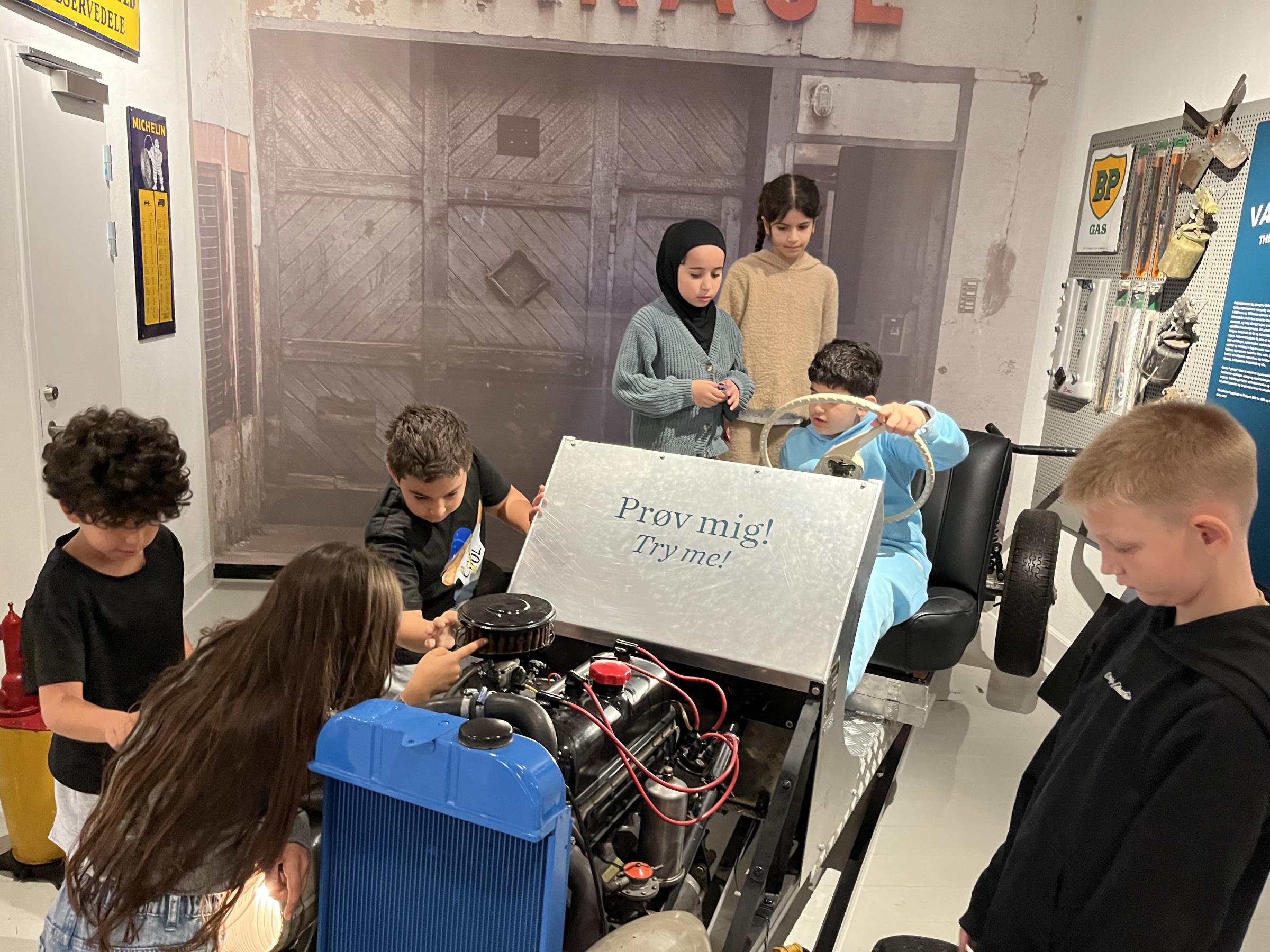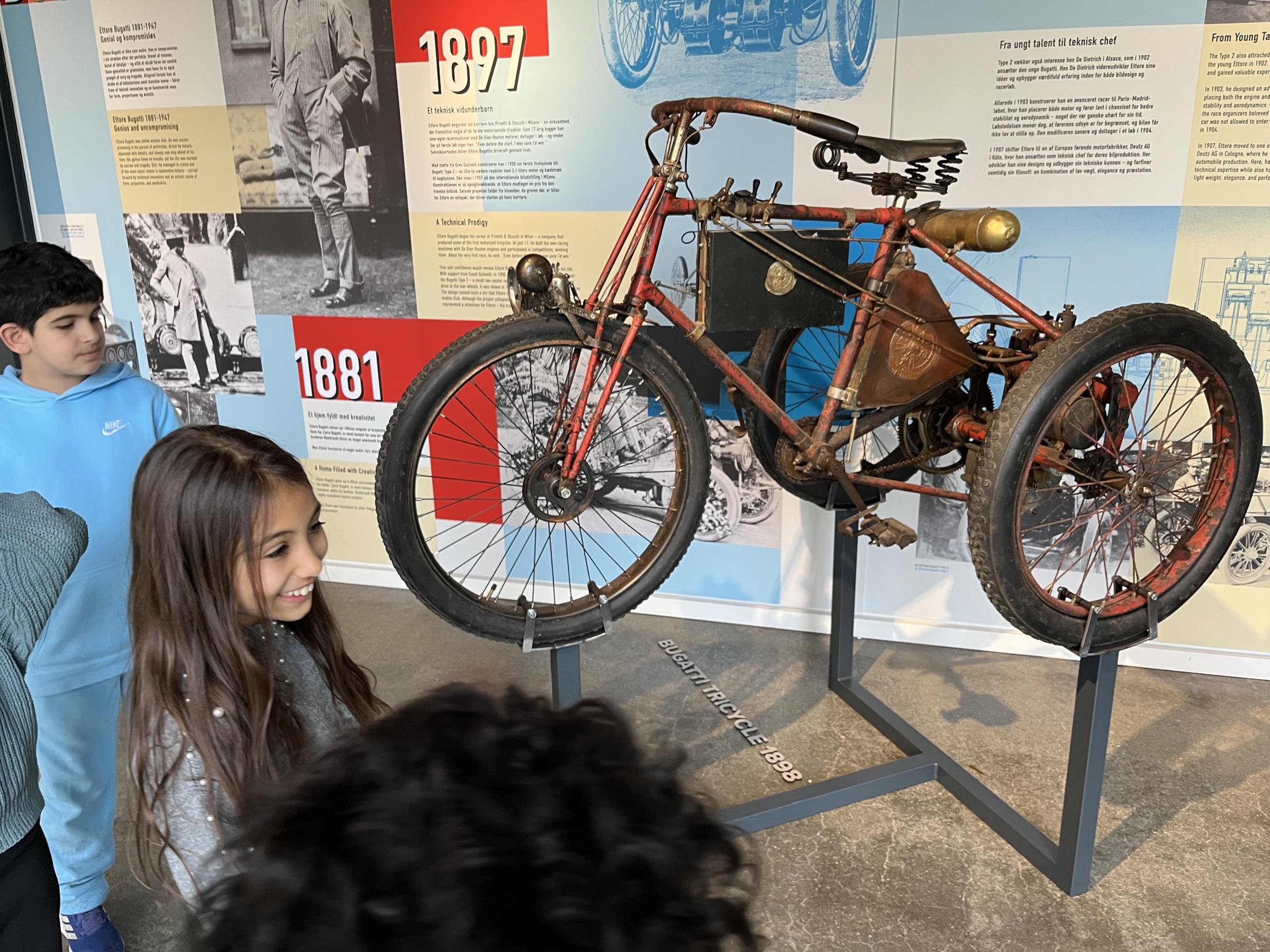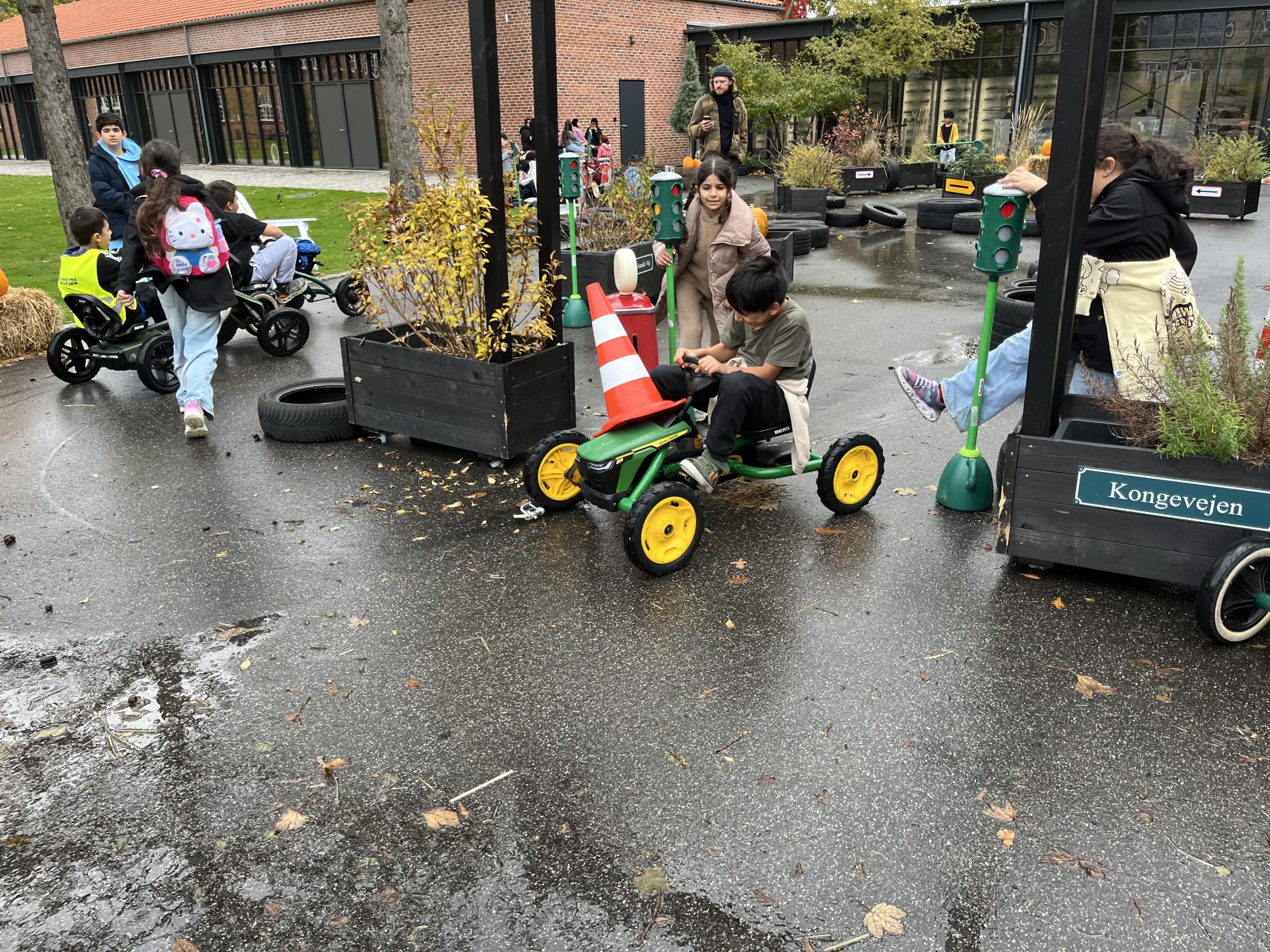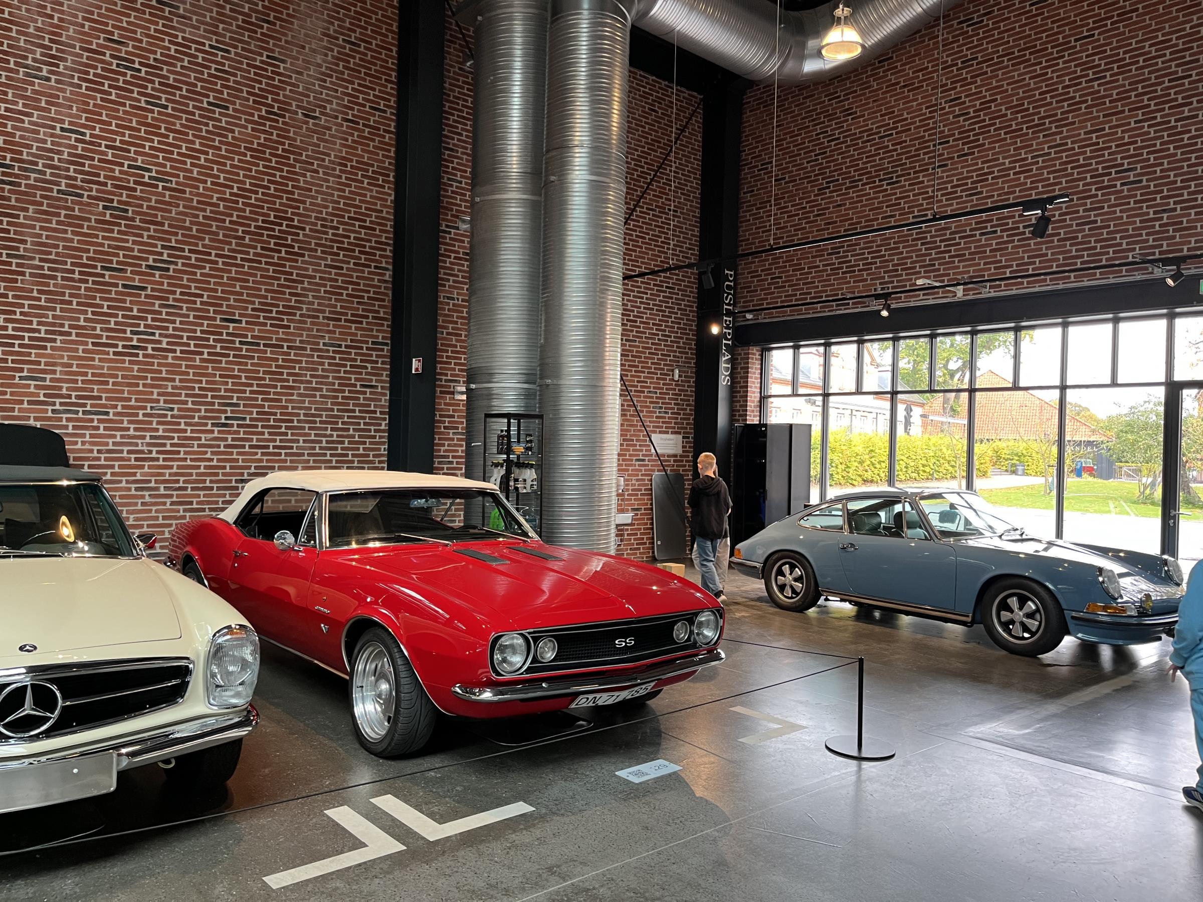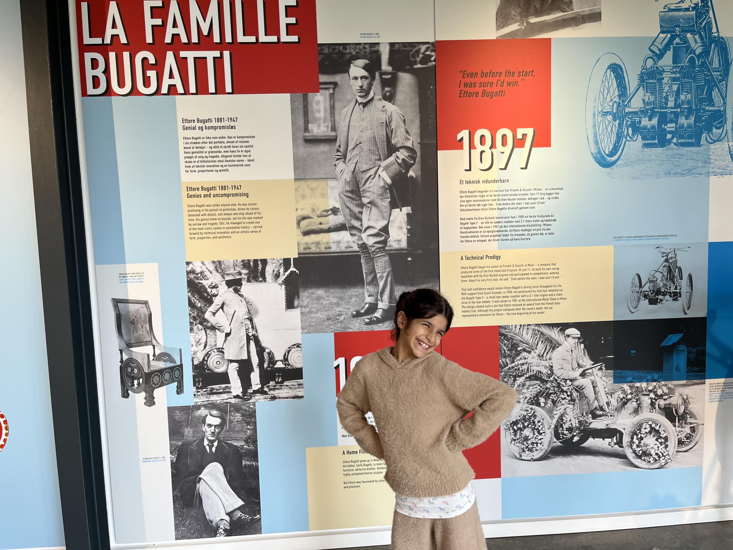 Vi var taget helt til Lyngby for at se på biler. Bilmuseet var fyldt med de skønneste biler fra alle tider, og vi fik til sidst lov til at give den gas uden for på den lille trafiklegeplads, vrooouummm…..!