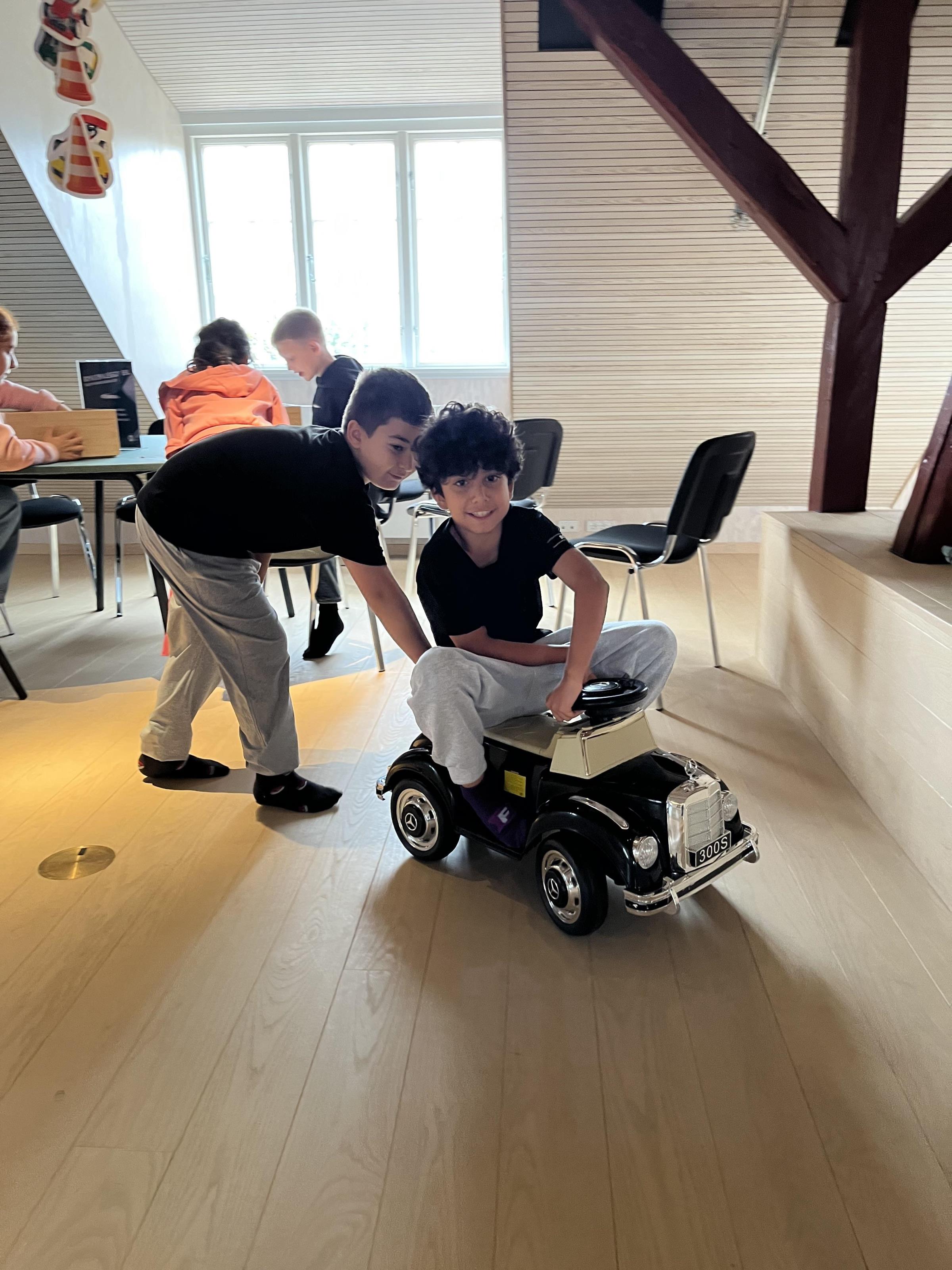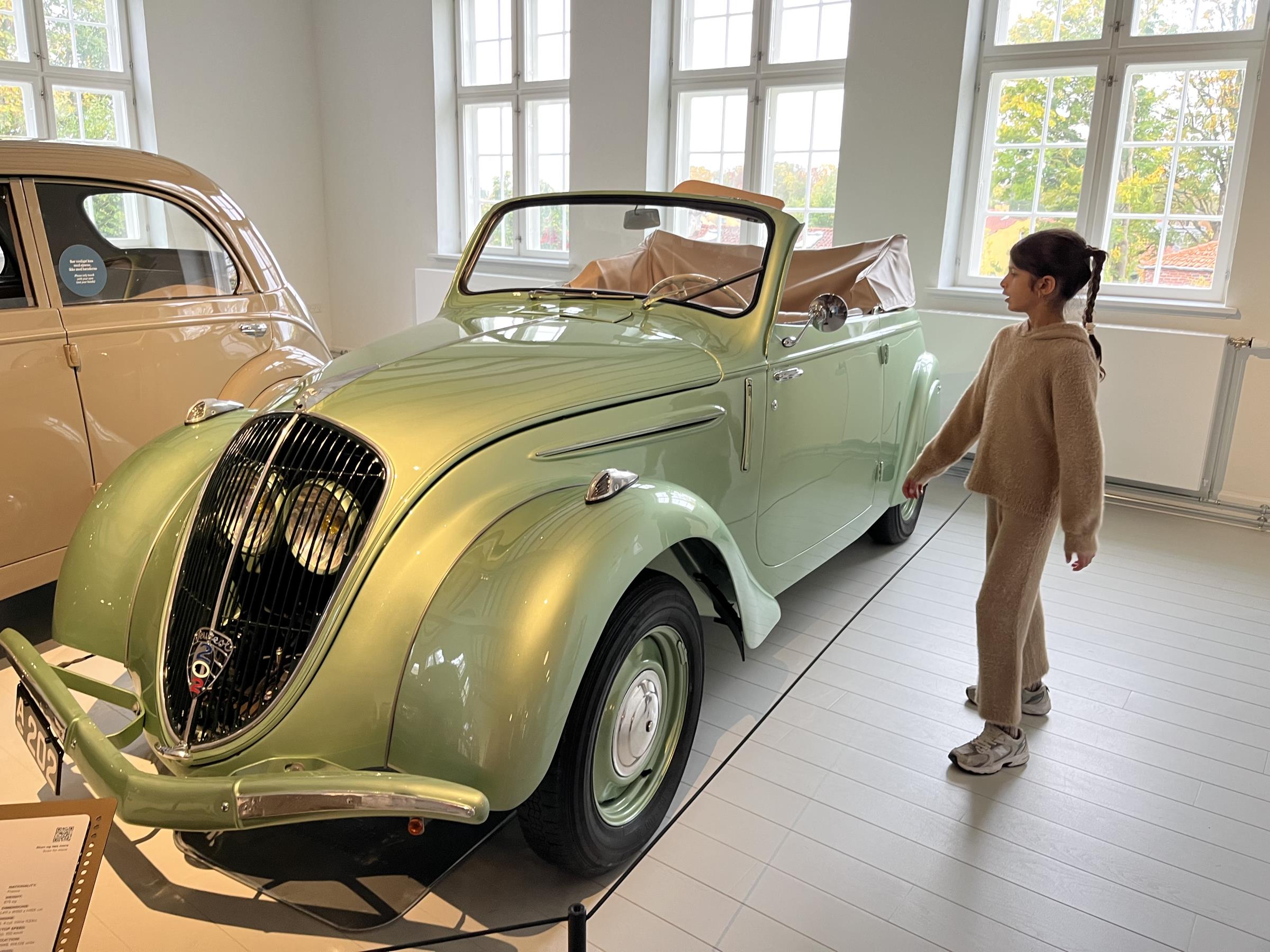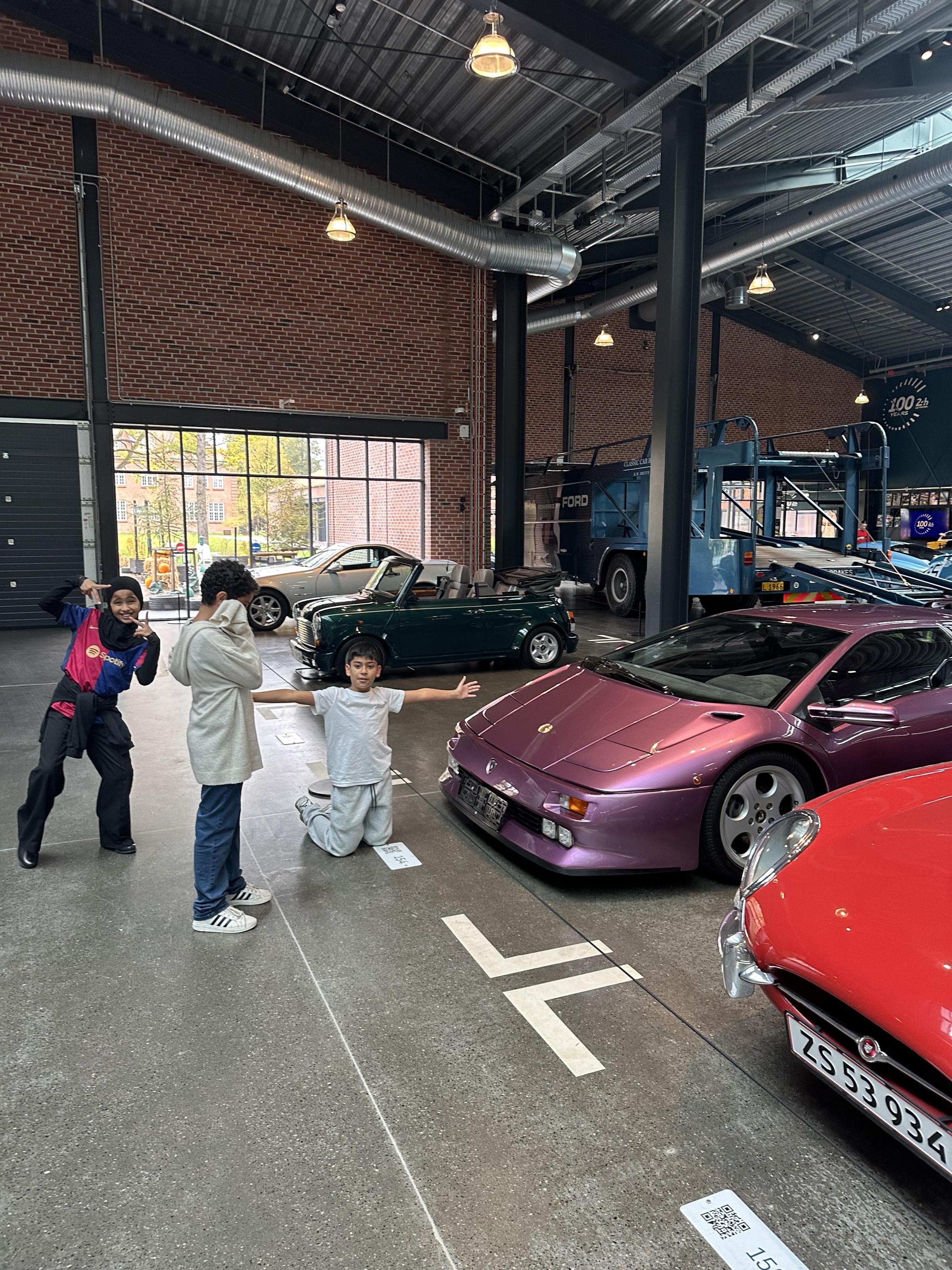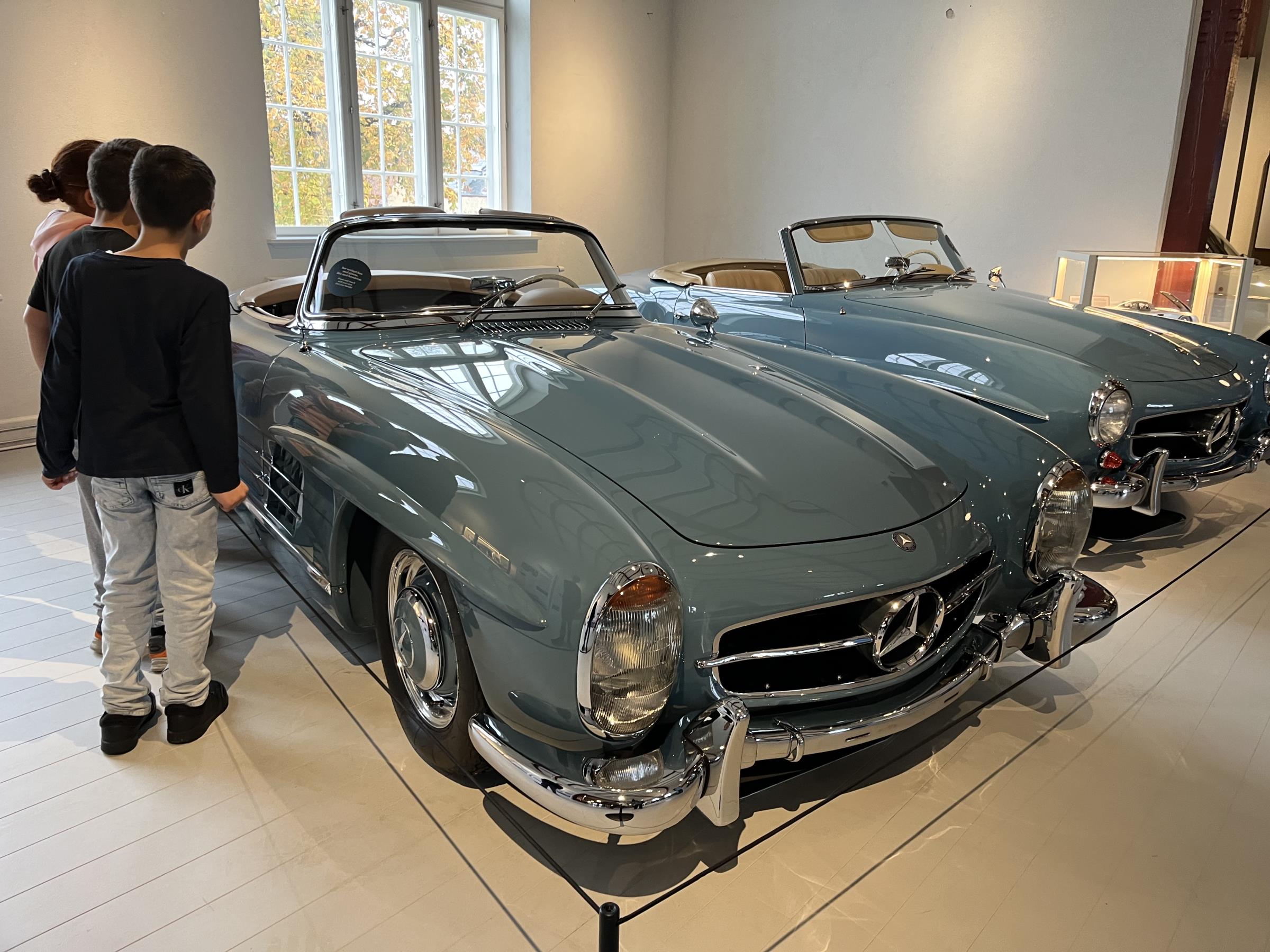 Vi var taget helt til Lyngby for at se på biler. Bilmuseet var fyldt med de skønneste biler fra alle tider, og vi fik til sidst lov til at give den gas uden for på den lille trafiklegeplads, vrooouummm…..!