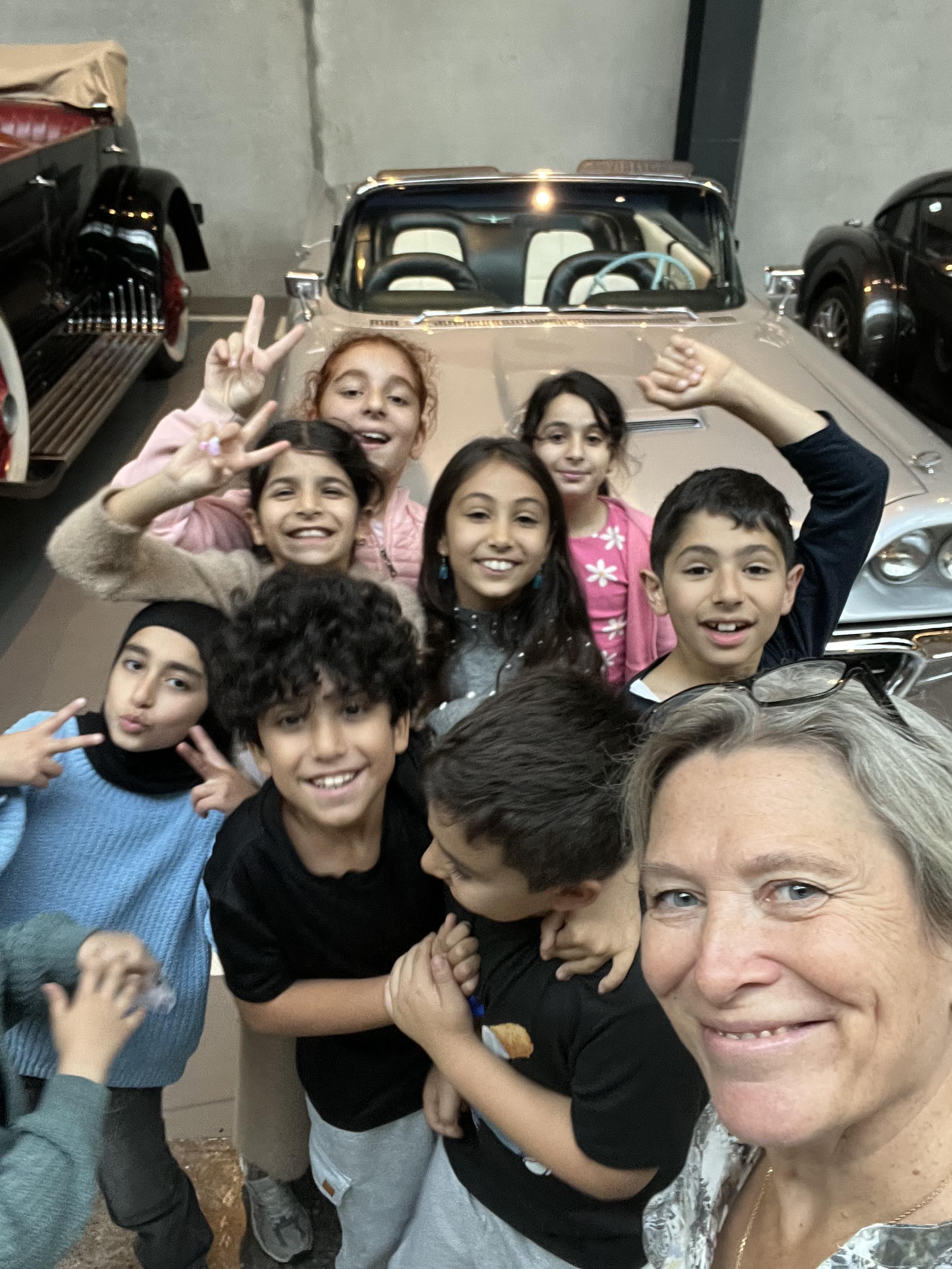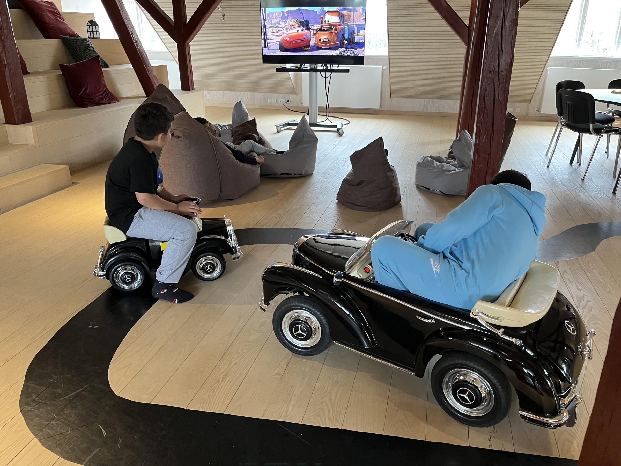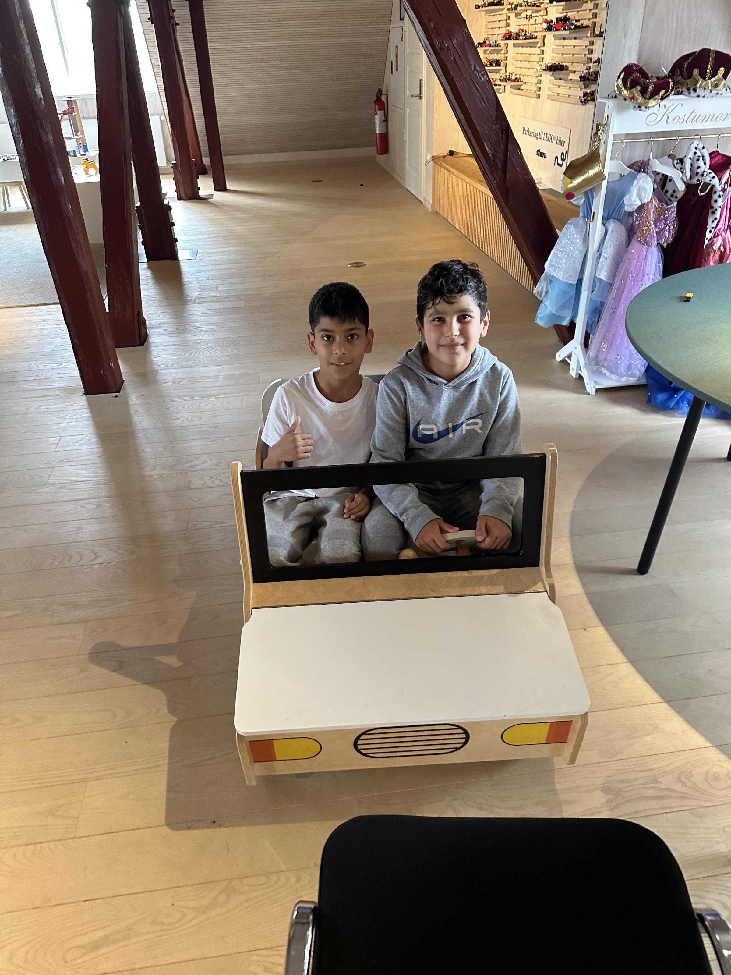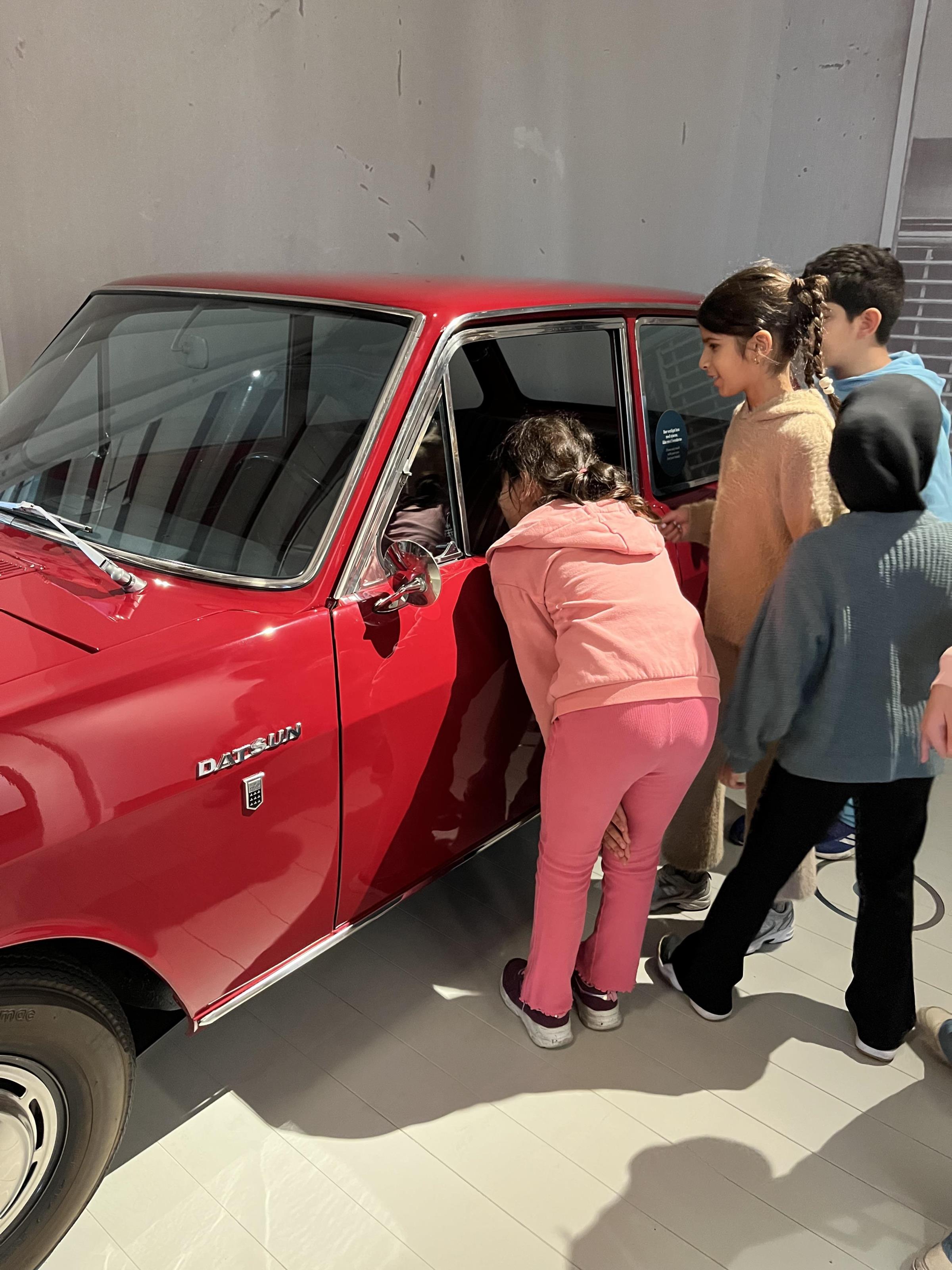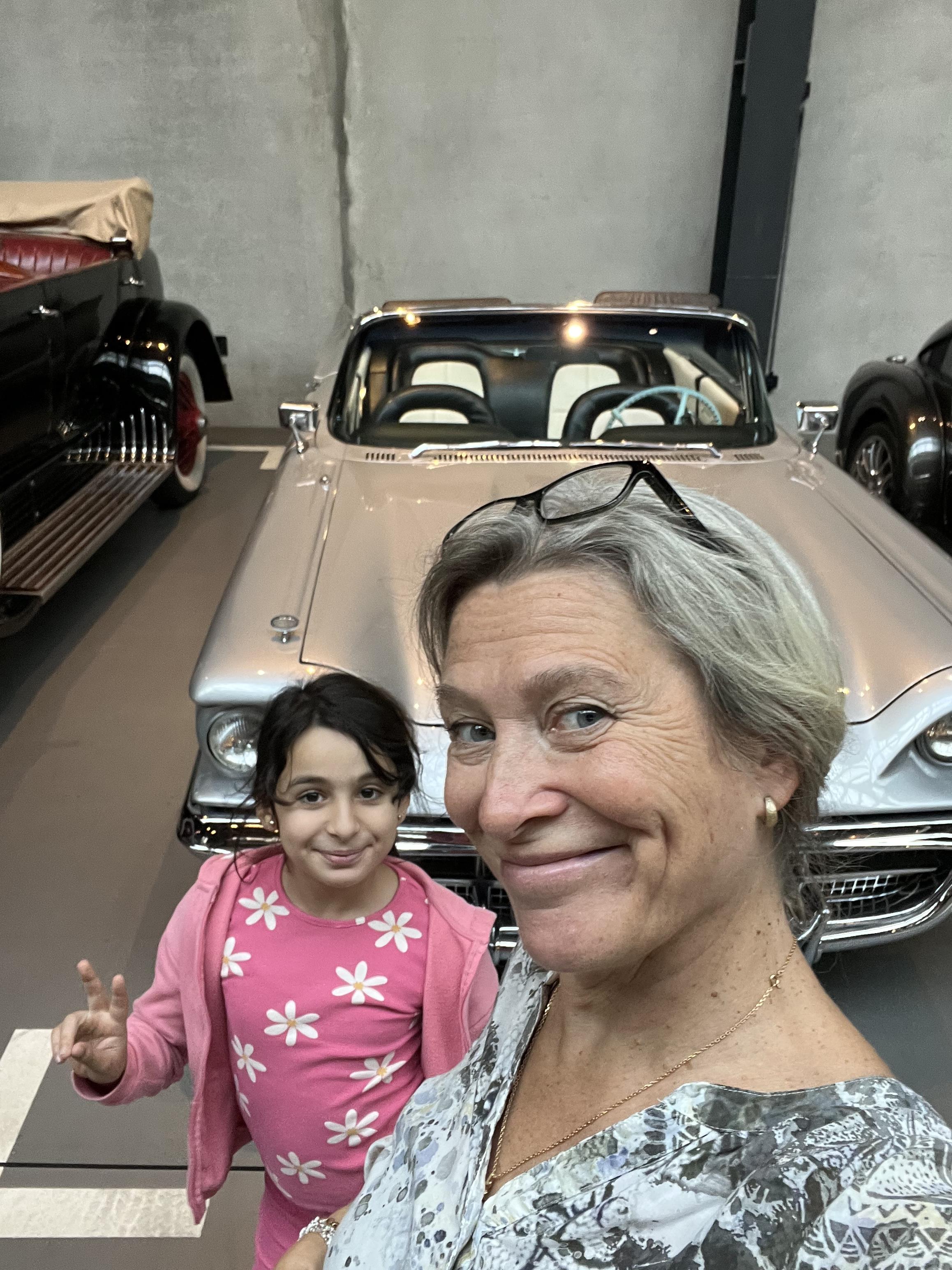 Vi var taget helt til Lyngby for at se på biler. Bilmuseet var fyldt med de skønneste biler fra alle tider, og vi fik til sidst lov til at give den gas uden for på den lille trafiklegeplads, vrooouummm…..!